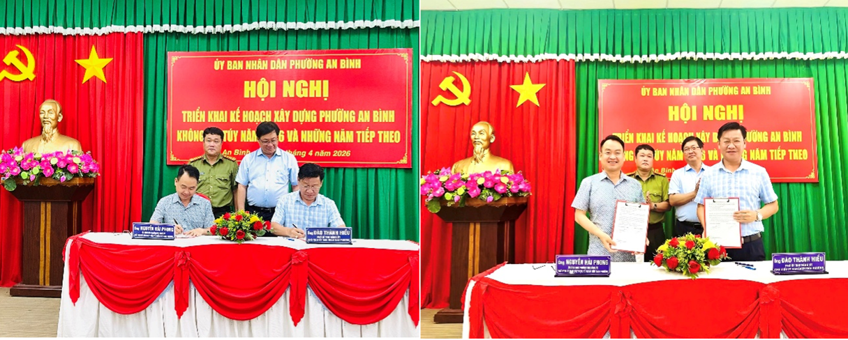 Trong khi đó, tại phường An Bình và xã Tân Bình, lực lượng Công an cơ sở đã chủ động tham mưu tổ chức Hội nghị triển khai kế hoạch xây dựng địa bàn không ma túy, ban hành Nghị quyết, kế hoạch cụ thể; đồng thời tổ chức ký kết phối hợp giữa chính quyền với Mặt trận Tổ quốc và các đoàn thể. Qua đó, xác định rõ trách nhiệm của từng lực lượng trong công tác tuyên truyền, quản lý đối tượng, kiểm tra, xử lý vi phạm và hỗ trợ người sau cai nghiện tái hòa nhập cộng đồng.