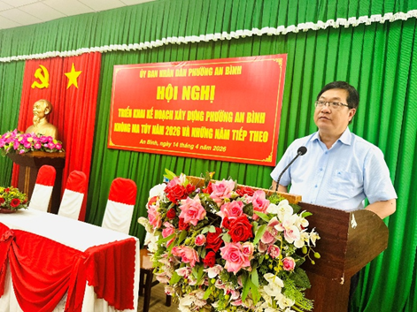 Đồng chí Trần Lê Bình, Bí thư Đảng ủy phường An Bình phát biểu chỉ đạo, định hướng công tác xây dựng địa bàn không ma túy.