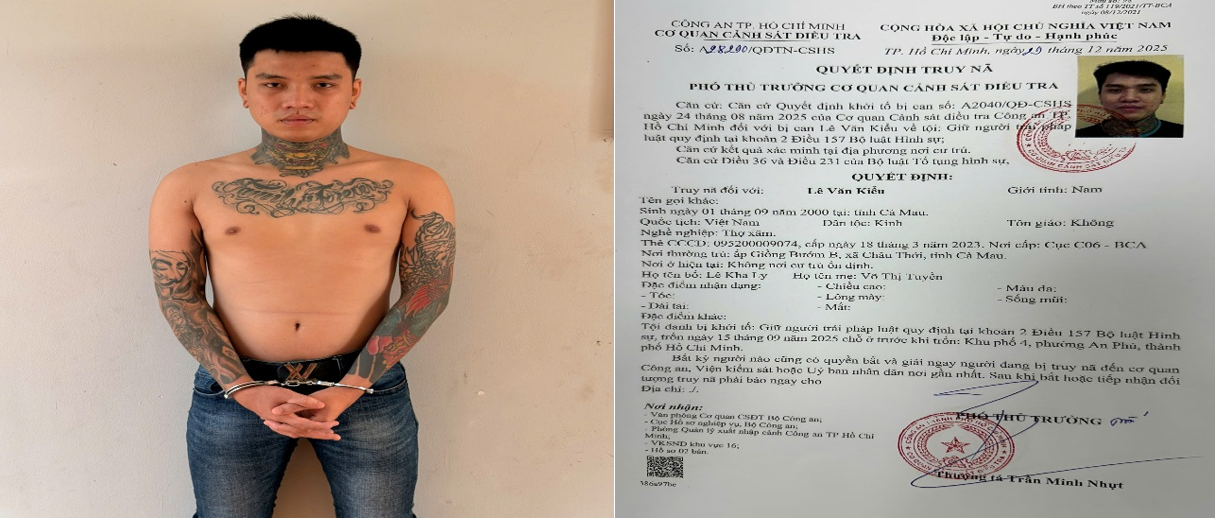 Đối tượng và Quyết định truy nã Lê Văn Kiểu tại cơ quan Công an