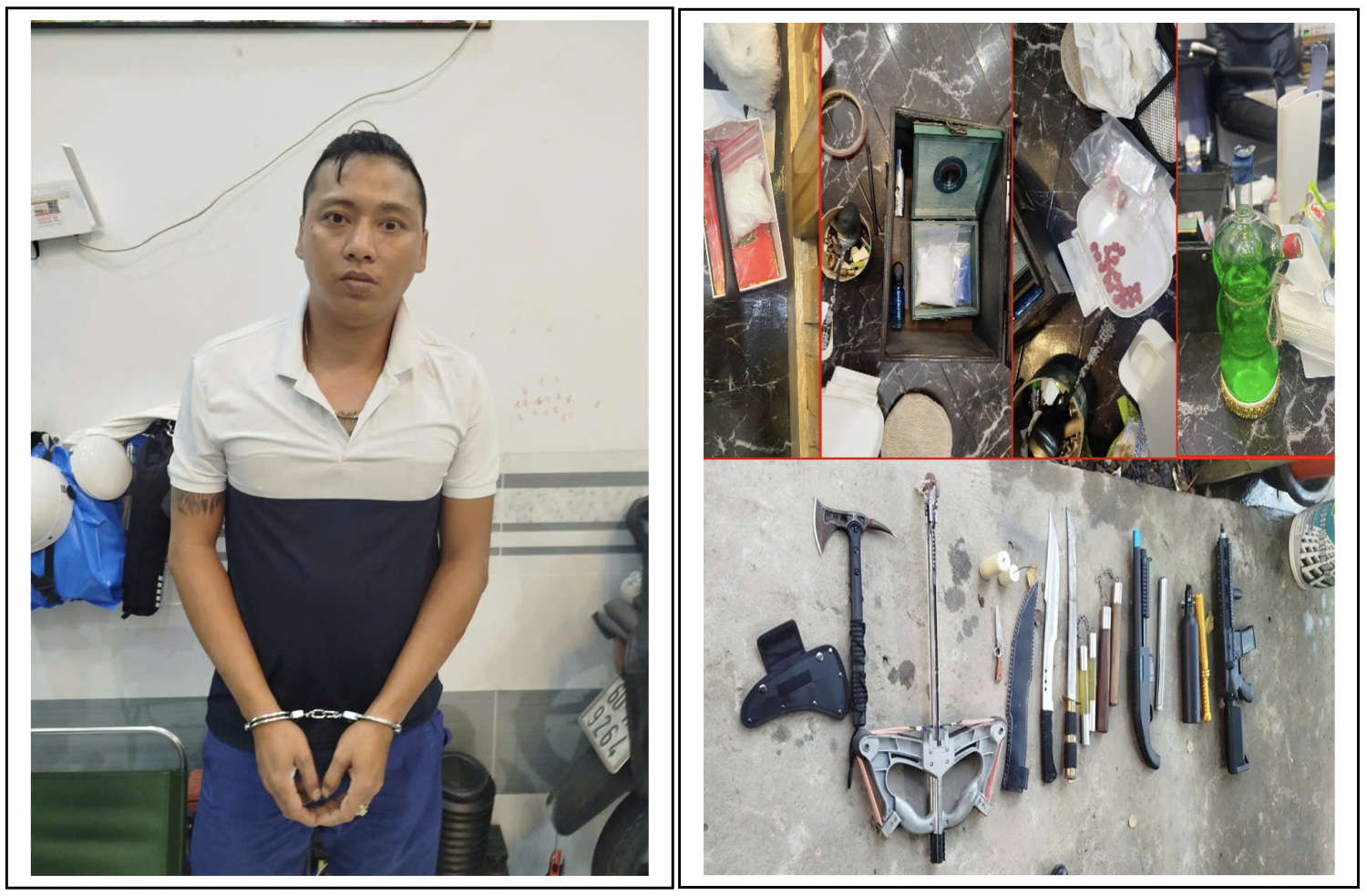 Phòng Cảnh sát hình sự bắt đối tượng truy nã Nguyễn Xuân Qui, đồng thời khám xét nơi ở của đối tượng thu giữ 136 gam ma túy và nhiều hung khí nguy hiểm