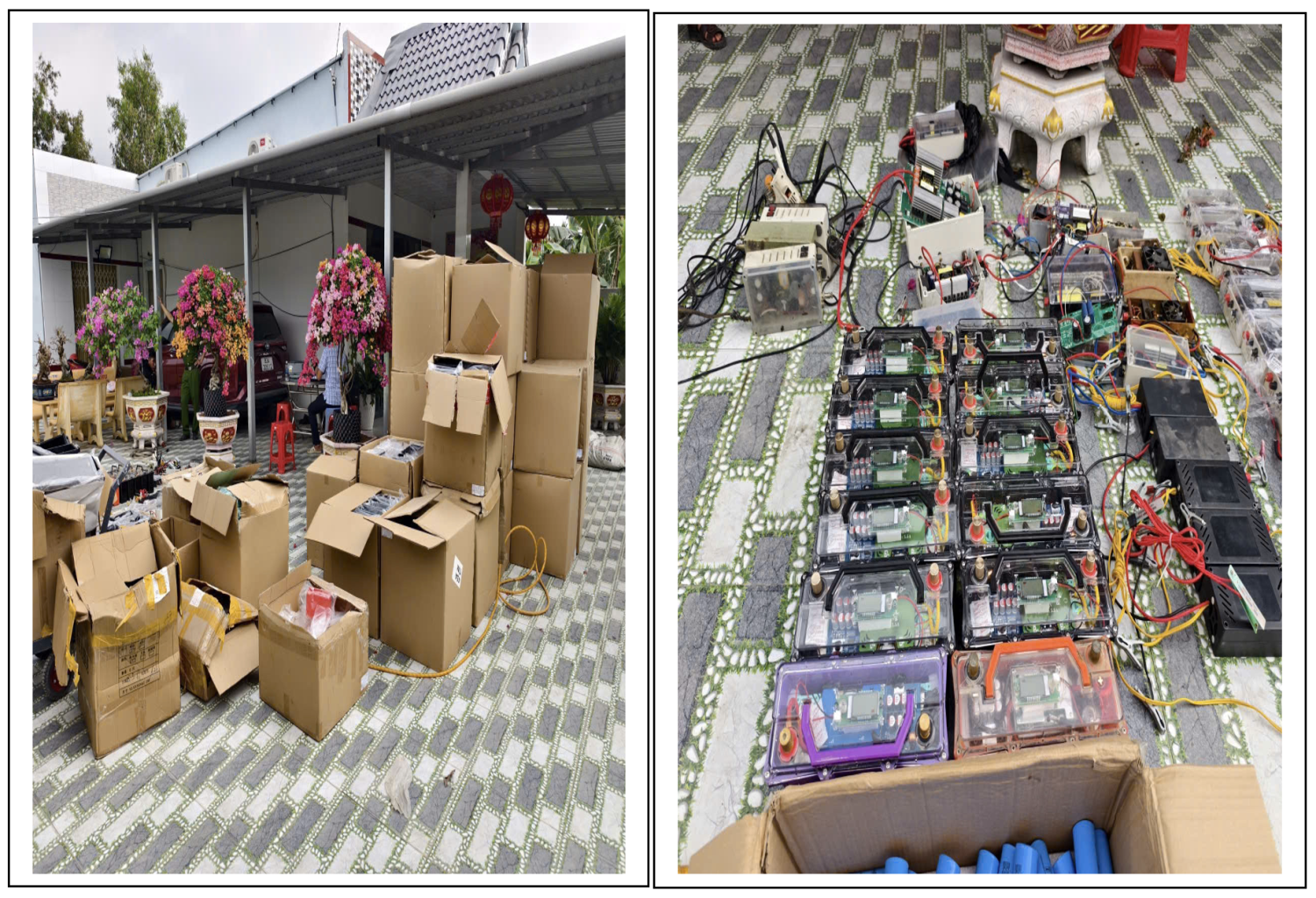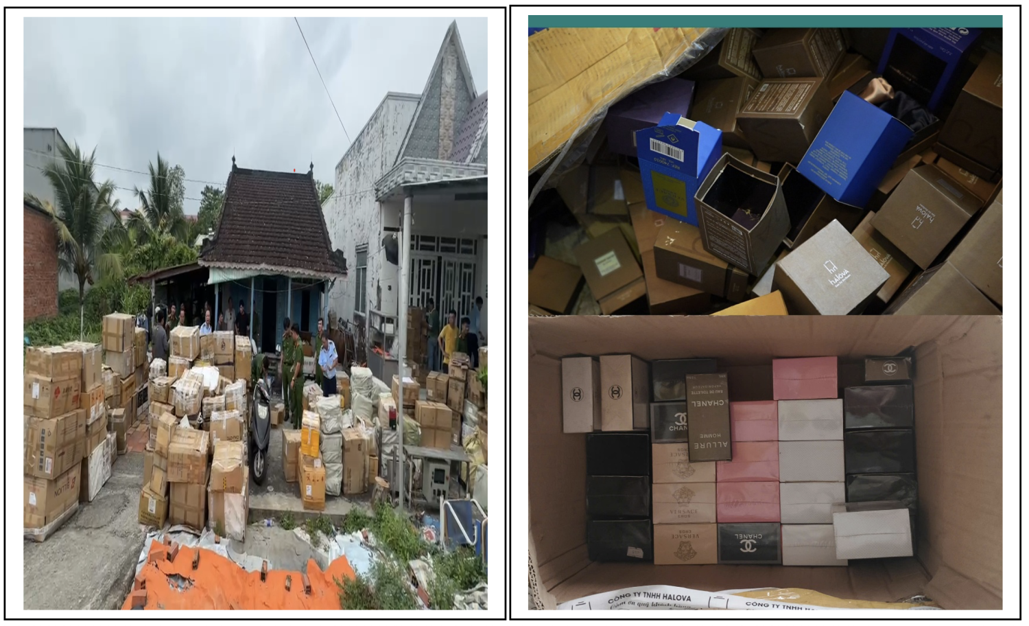 Phòng Cảnh sát kinh tế phối hợp các đơn vị liên quan kiểm tra 03 địa điểm sản xuất, buôn bán nước hoa giả trên địa bàn xã Thạnh An, thu giữ 1.400 thiết bị máy móc, đồ dùng để sản xuất, mua bán mỹ phẩm và hơn 1.200 chai, hộp nước hoa thành phẩm