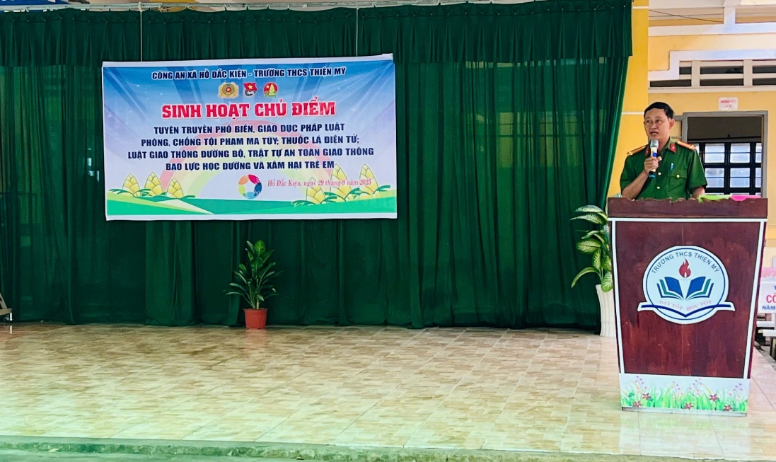 Lực lượng Công an xã Hồ Đắc Kiện thường xuyên tuyên tuyên truyền phòng, chống tội phạm và tệ nạn xã hội
