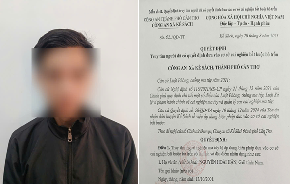 Tiếp tục phát huy kết quả đạt được, ngày 30/01/2026, trong quá trình nắm tình hình địa bàn, Công an xã Kế Sách đã phát hiện, bắt giữ đối tượng Nguyễn Hoài Hận, sinh năm 2001, ngụ ấp Kinh Giữa 1, xã Kế Sách, thành phố Cần Thơ, là đối tượng đang bị truy tìm để đưa vào cơ sở cai nghiện bắt buộc theo Quyết định của Công an xã Kế Sách, sau hơn 05 tháng lẩn trốn.