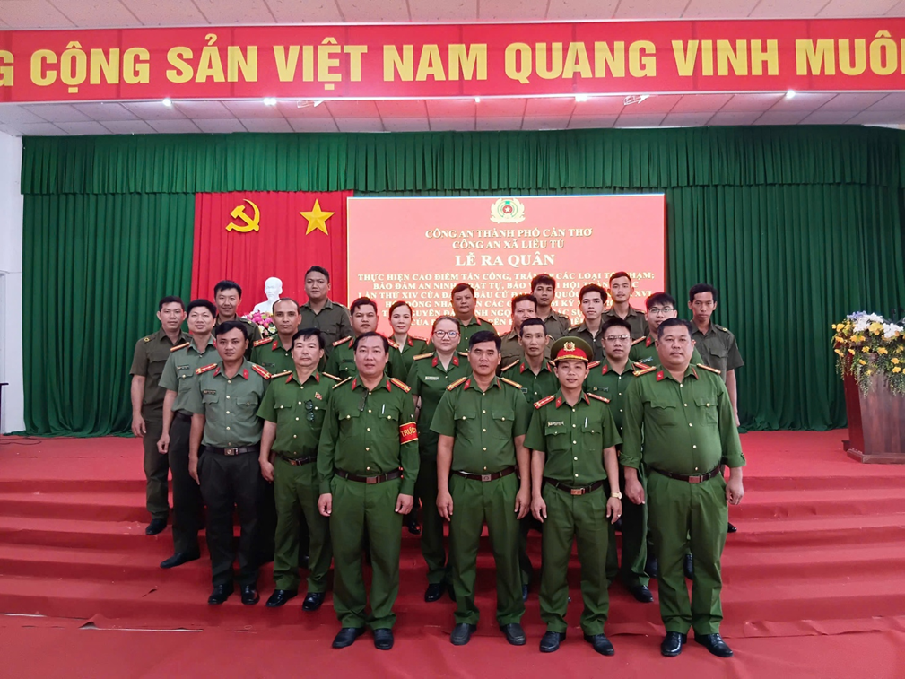 Tham dự buổi Lễ có đồng chí Thiếu tá Huỳnh Phước Vui, Phó Trưởng phòng Tổ chức cán bộ, Công an thành phố Cần Thơ; đồng chí Lâm Thị Thu Ánh, Phó Bí thư Thường trực Đảng ủy, Chủ nhiệm Ủy ban Kiểm tra Đảng ủy xã; đồng chí Diệp Thanh Vĩnh, Phó Bí thư Đảng ủy, Chủ tịch Ủy ban nhân dân xã; cùng tập thể Ban Lãnh đạo Công an xã, đại diện các ban, ngành, đoàn thể và lực lượng tham gia bảo vệ an ninh, trật tự ở cơ sở. Phát biểu chỉ đạo tại buổi Lễ, đồng chí Chủ tịch Ủy ban nhân dân xã ghi nhận, biểu dương tinh thần trách nhiệm, sự chủ động của lực lượng Công an xã trong thời gian qua; đồng thời nhấn mạnh yêu cầu bảo đảm an ninh, trật tự trong thời điểm diễn ra nhiều sự kiện chính trị quan trọng của đất nước và thành phố Cần Thơ. Đồng chí yêu cầu Công an xã triển khai cao điểm với tinh thần tiến công, hành động quyết liệt, gắn với phong trào thi đua Ba nhất: “Kỷ luật nhất – Trung thành nhất – Gần dân nhất” và khẩu hiệu hành động của Công an thành phố. Tiếp thu ý kiến chỉ đạo, thay mặt Ban Lãnh đạo Công an xã, đồng chí Trung tá Trần Hoàng Huy, Trưởng Công an xãLiêu Tú nghiêm túc tiếp thu ý kiến chỉ đạo và phát lệnh ra quân, yêu cầu các Tổ công tác khẩn trương xây dựng kế hoạch cụ thể, phân công nhiệm vụ rõ ràng, triển khai hiệu quả ngay từ những ngày đầu. Từ ngày 15/12/2025, Công an xã Liêu Tú sẽ triển khai đồng bộ các biện pháp nghiệp vụ, chủ động nắm chắc tình hình địa bàn; kịp thời phát hiện, đấu tranh, ngăn chặn các loại tội phạm; bảo vệ tuyệt đối an ninh, an toàn các sự kiện chính trị, văn hóa, xã hội. Đồng thời, tích cực phối hợp tham mưu Đảng ủy, Ủy ban nhân dân xã chỉ đạo giải quyết các vấn đề phát sinh ngay từ cơ sở, không để hình thành “điểm nóng” về an ninh, trật tự.Bên cạnh đó, Công an xã tập trung phòng ngừa, đấu tranh trấn áp tội phạm hình sự, ma túy, tệ nạn xã hội; siết chặt quản lý các ngành, nghề kinh doanh có điều kiện về an ninh, trật tự; tăng cường tuần tra bảo đảm trật tự, an toàn giao thông; thực hiện hiệu quả công tác phòng cháy, chữa cháy và cứu nạn, cứu hộ. Công tác tuyên truyền, phổ biến pháp luật được đẩy mạnh nhằm nâng cao ý thức cảnh giác của Nhân dân, phát huy vai trò tố giác tội phạm.