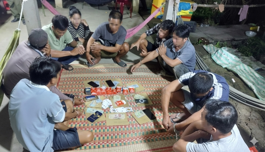 Các đối tượng cùng tang vật tại hiện trường vụ đánh bạc ngày 04/01/2026