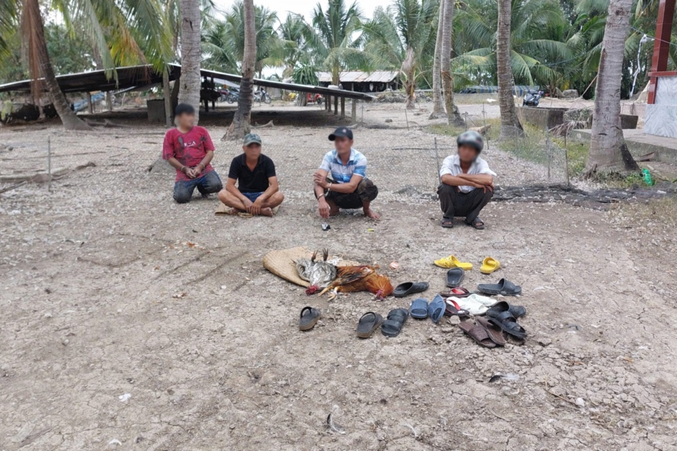 Các đối tượng cùng tang vật tại hiện trường vụ đá gà qua mạng ngày 30/12/2025
