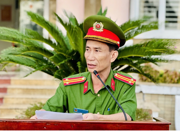 Tại buổi lễ, Trung tá Phạm Hồng Trường, Phó Trưởng Công an xã Mỹ Tú thông qua Kế hoạch cao điểm