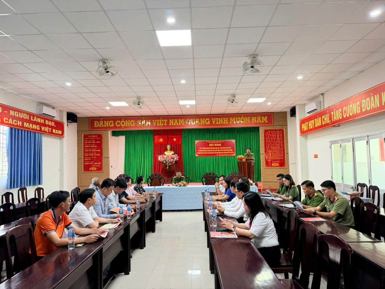 Tại Hội nghị, Công an xã đã thông qua nội dung phương án phối hợp, trong đó xác định rõ trách nhiệm của từng đơn vị trong công tác phòng ngừa, phát hiện và đấu tranh với các loại tội phạm như cướp tài sản, trộm cắp tài sản, gây rối trật tự công cộng, lừa đảo trên không gian mạng và các hành vi vi phạm pháp luật khác. Phương án được xây dựng nhằm nâng cao nhận thức, trách nhiệm của Chỉ huy, cán bộ, chiến sĩ Công an xã và các cơ sở trong công tác bảo đảm an ninh, trật tự; đồng thời tăng cường hiệu quả chỉ đạo, điều hành và khả năng phối hợp, hỗ trợ kịp thời khi xảy ra các tình huống phức tạp, đột xuất. Nội dung phối hợp tập trung vào việc trao đổi thông tin liên quan đến tình hình an ninh, trật tự; kịp thời thông báo phương thức, thủ đoạn hoạt động của các loại tội phạm; tổ chức tuyên truyền, hướng dẫn kỹ năng nhận diện, xử lý tình huống cho nhân viên các phòng giao dịch; xây dựng cơ chế liên lạc nhanh giữa Công an xã và các đơn vị nhằm bảo đảm xử lý hiệu quả khi có vụ việc phát sinh.