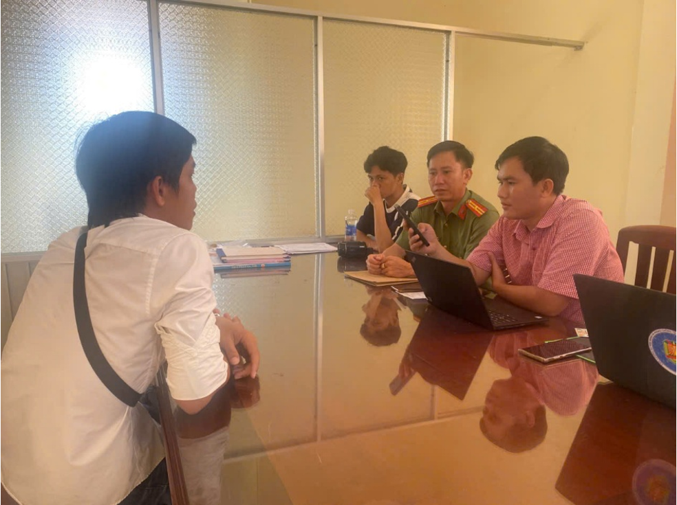 Công an xã Tân Hòa phối hợp các phòng nghiệp vụ làm việc với người đăng tải, chia sẻ thông tin sai sự thật trên mạng xã hội.