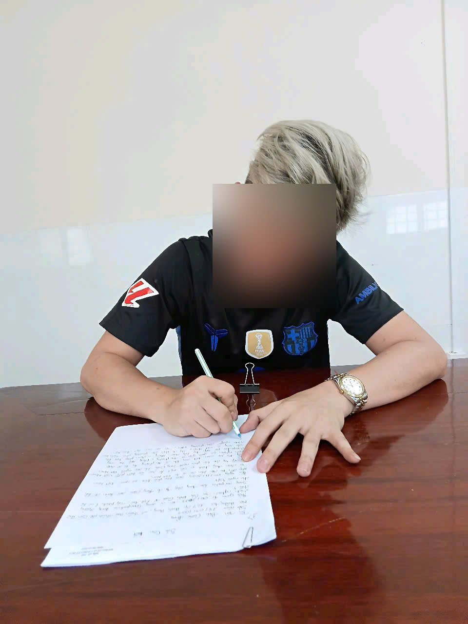 Công an xã Thuận Hòa tổ chức cho Đ.Q.Đ viết cam kết không tiếp tục sang Campuchia tham gia các hoạt động lừa đảo