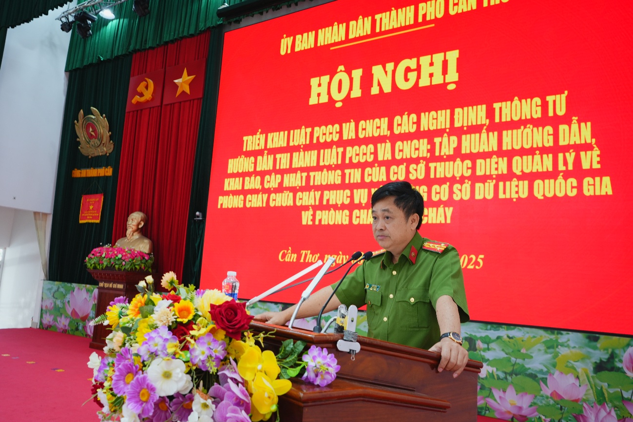 Phát biểu khai mạc Hội nghị, Đại tá Lê Đức Bảy, Ủy viên Ban Thường vụ Đảng ủy, Phó Giám đốc Công an thành phố nhấn mạnh: Việc triển khai Luật PCCC & CNCH cùng các văn bản hướng dẫn thi hành là nhiệm vụ quan trọng, góp phần cụ thể hóa chủ trương, chính sách của Đảng, Nhà nước và Bộ Công an, nâng cao hiệu lực quản lý nhà nước trong lĩnh vực PCCC & CNCH. Trong bối cảnh Cần Thơ có hơn 27.000 cơ sở thuộc diện quản lý về PCCC, việc cập nhật, bổ sung kiến thức pháp luật cho cán bộ các cấp là yêu cầu cấp thiết. Đồng chí đề nghị các đại biểu nêu cao tinh thần trách nhiệm, nghiêm túc tiếp thu, trao đổi, vận dụng hiệu quả kiến thức vào thực tiễn; đồng thời tiếp tục tuyên truyền, phổ biến rộng rãi các quy định pháp luật, góp phần xây dựng hệ thống quản lý PCCC & CNCH đồng bộ, hiện đại, bảo đảm an toàn cho thành phố.