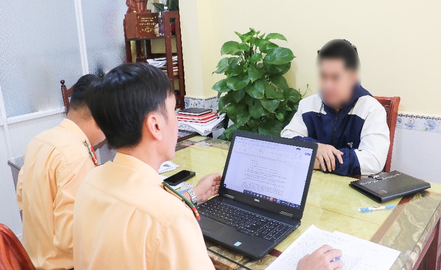 Lực lượng chức năng làm việc với ông P.N.T tại cơ quan Công an