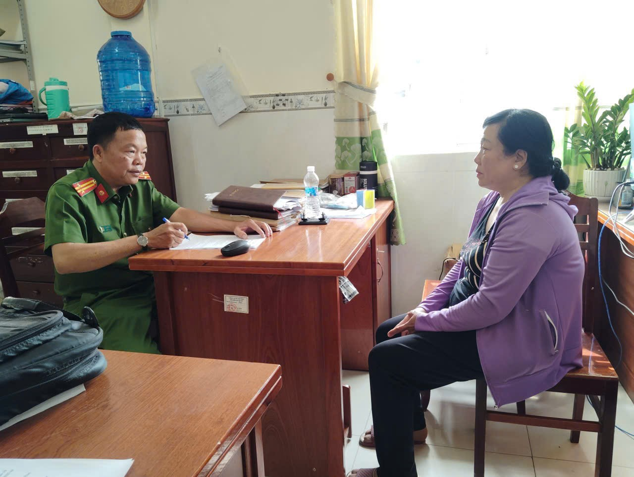 Cán bộ đang làm việc với đối tượng truy nã ra đầu thú