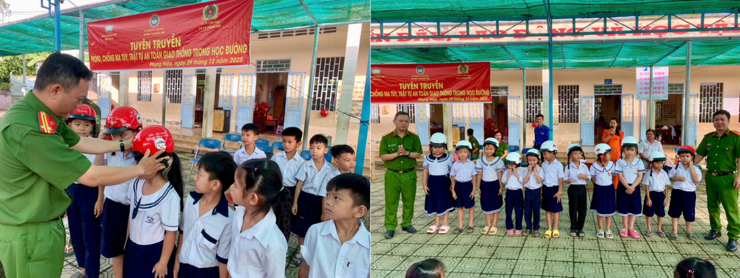 Đối với xã Phụng Hiệp, Công an xã đã phối hợp Ủy ban Mặt trận Tổ quốc Việt Nam xã tổ chức tuyên truyền phòng, chống ma túy và trật tự, an toàn giao thông cho giáo viên và học sinh tại Trường Tiểu học Phụng Hiệp. Tại buổi tuyên truyền, cán bộ Công an xã đã phổ biến những kiến thức cơ bản về tác hại của ma túy, các quy định pháp luật về trật tự, an toàn giao thông; đồng thời trao tặng gần 50 nón bảo hiểm và hơn 400 tờ rơi tuyên truyền. Hoạt động góp phần hình thành ý thức chấp hành pháp luật cho học sinh, giữ vững thành tích xã Phụng Hiệp là địa bàn không có ma túy, bảo đảm an ninh, trật tự tại cơ sở.
