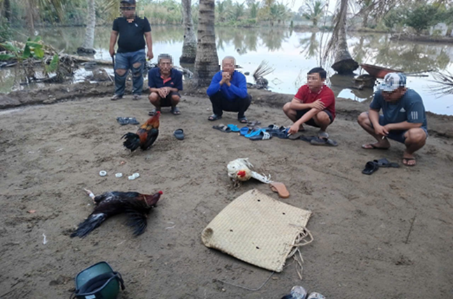 Các đối tượng tham gia đá gà bị bắt quả tang tại xã Vị Thủy