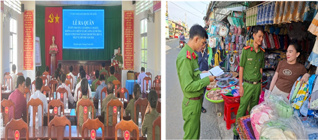 Công an phường phối hợp Phòng Kinh tế, Hạ tầng và Đô thị phường đẩy mạnh tuyên truyền, vận động các hộ tiểu thương ký cam kết không lấn chiếm vỉa hè, lòng, lề đường; tăng cường kiểm tra, xử lý các trường hợp vi phạm. Đồng thời, tổ chức tuyên truyền pháp luật về an toàn giao thông, phòng, chống bạo lực học đường, phòng cháy, chữa cháy và cứu nạn, cứu hộ; ra mắt mô hình “Cổng trường an toàn giao thông” tại Trường trung học phổ thông Lê Văn Tám. Đợt cao điểm được triển khai tập trung tại các khu vực chợ, trường học và các tuyến giao thông trọng điểm từ ngày 15/01/2026 đến ngày 12/02/2026.