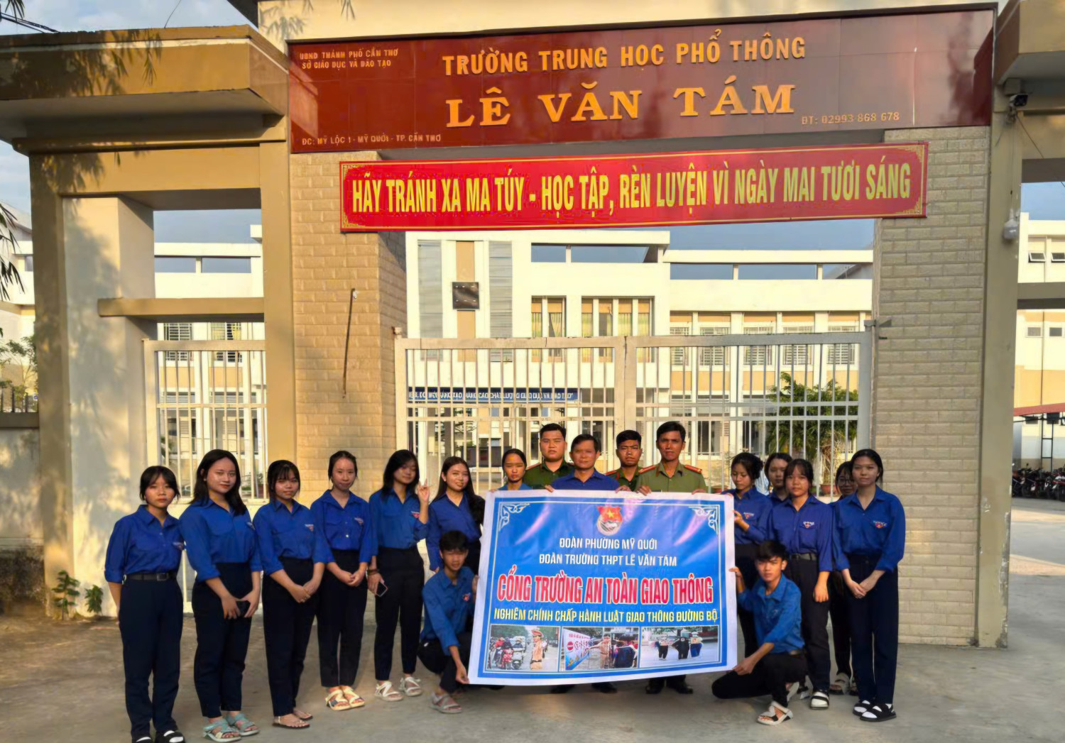 Hình ảnh ra mắt mô hình cổng trường an toàn giao thông tại Trường Trung học phổ thông Lê Văn Tám