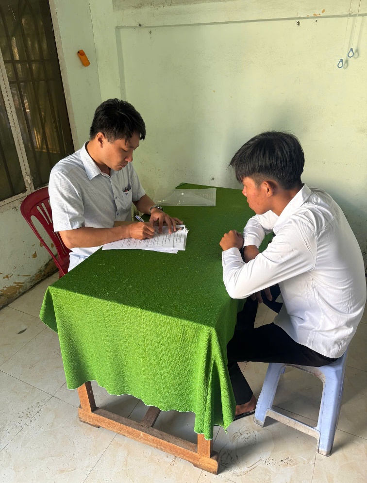 Đối tượng Đ.V.N trình diện tại Công an xã Tân Bình