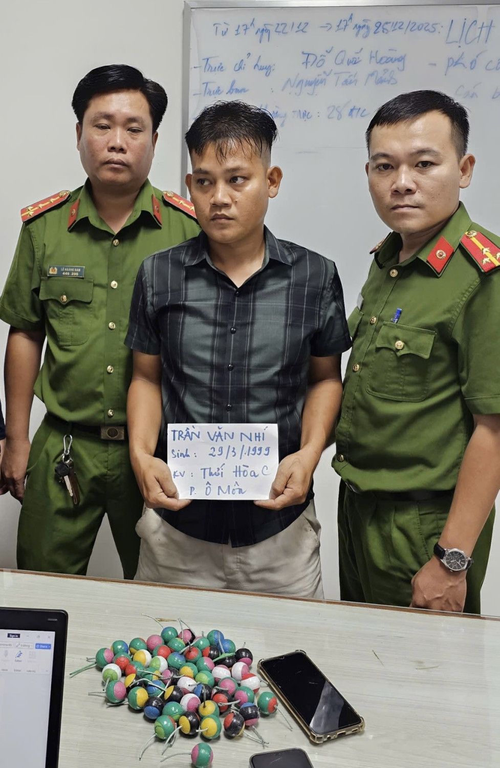 Qua công tác nắm tình hình, ngày 19/12/2025, Phòng Cảnh sát quản lý hành chính về trật tự xã hội, Công an thành phố phối hợp với Công an phường Thốt Nốt đã tiến hành kiểm tra nơi ở của Đặng Quốc Thiện (sinh năm 1995, trú tại phường Thốt Nốt), phát hiện hoạt động mua bán linh kiện súng trái phép trên không gian mạng, thu giữ 07 linh kiện súng gồm: Ổ đạn, cốc test áp, ngàm lắp ống ngắm, máy đo khoảng cách và bồn hơi. Tiếp đó, ngày 22/12/2025, Công an thành phố đã phát hiện, bắt giữ đối tượng Trần Văn Nhí (sinh năm 1999, trú tại phường Ô Môn) khi đang trên đường đi giao 50 quả pháo nổ cho người mua thông qua mạng xã hội.