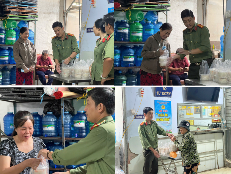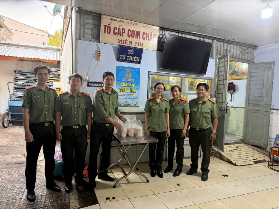“Suất ăn nghĩa tình” là mô hình giàu ý nghĩa nhân văn, được Phòng Tham mưu duy trì thường xuyên vào sáng thứ Bảy tuần thứ nhất và tuần thứ ba hằng tháng. Với tinh thần trách nhiệm, sẻ chia cùng cộng đồng, cán bộ, chiến sĩ trực tiếp chuẩn bị nguyên liệu, nấu ăn và trao tận tay các phần cháo dinh dưỡng đến người bệnh, thân nhân có hoàn cảnh khó khăn. Qua đó, góp phần xây dựng hình ảnh đẹp của người chiến sĩ Công an gần gũi, tận tụy và trách nhiệm trong lòng Nhân dân.