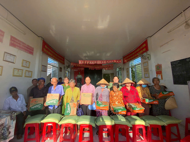 Chi đoàn và Chi hội Phụ nữ Công an xã Long Phú trao quà cho các hộ có hoàn cảnh khó khăn trên địa bàn.