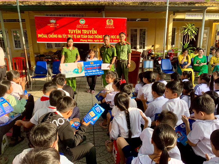 Theo đó, ngày 10/3/2026, Công an xã Phụng Hiệp phối hợp Ủy ban MTTQ Việt Nam xã tổ chức tuyên truyền pháp luật về phòng, chống ma túy và trật tự, an toàn giao thông cho giáo viên và học sinh Trường Tiểu học Hòa Mỹ 3, thu hút sự tham gia của 274 học sinh cùng tập thể giáo viên nhà trường.