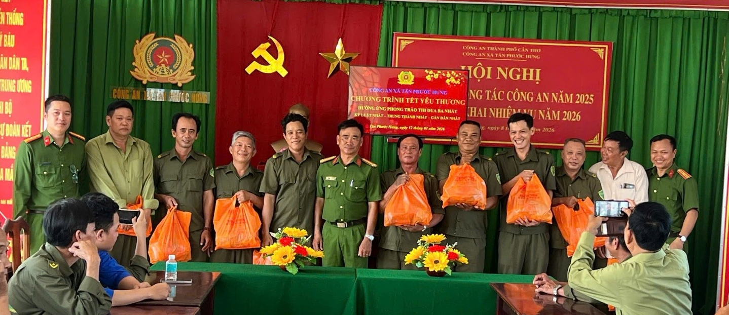 Hưởng ứng phong trào thi đua Ba nhất: “Kỷ luật nhất - Trung thành nhất - Gần dân nhất”, nhân dịp Tết Nguyên đán Bính Ngọ năm 2026, ngày 13/02/2026, Công an xã Tân Phước Hưng tổ chức Chương trình trao quà Tết cho lực lượng tham gia bảo vệ an ninh, trật tự ở cơ sở trên địa bàn xã.