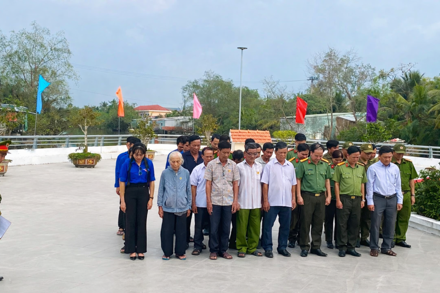 Ảnh: Đoàn công tác Phòng PA05 cùng các đơn vị và bà con nhân dân xã Đại Hải dành phút mặc niệm trước Tượng đài Anh hùng LLVTND Thiều Văn Chỏi