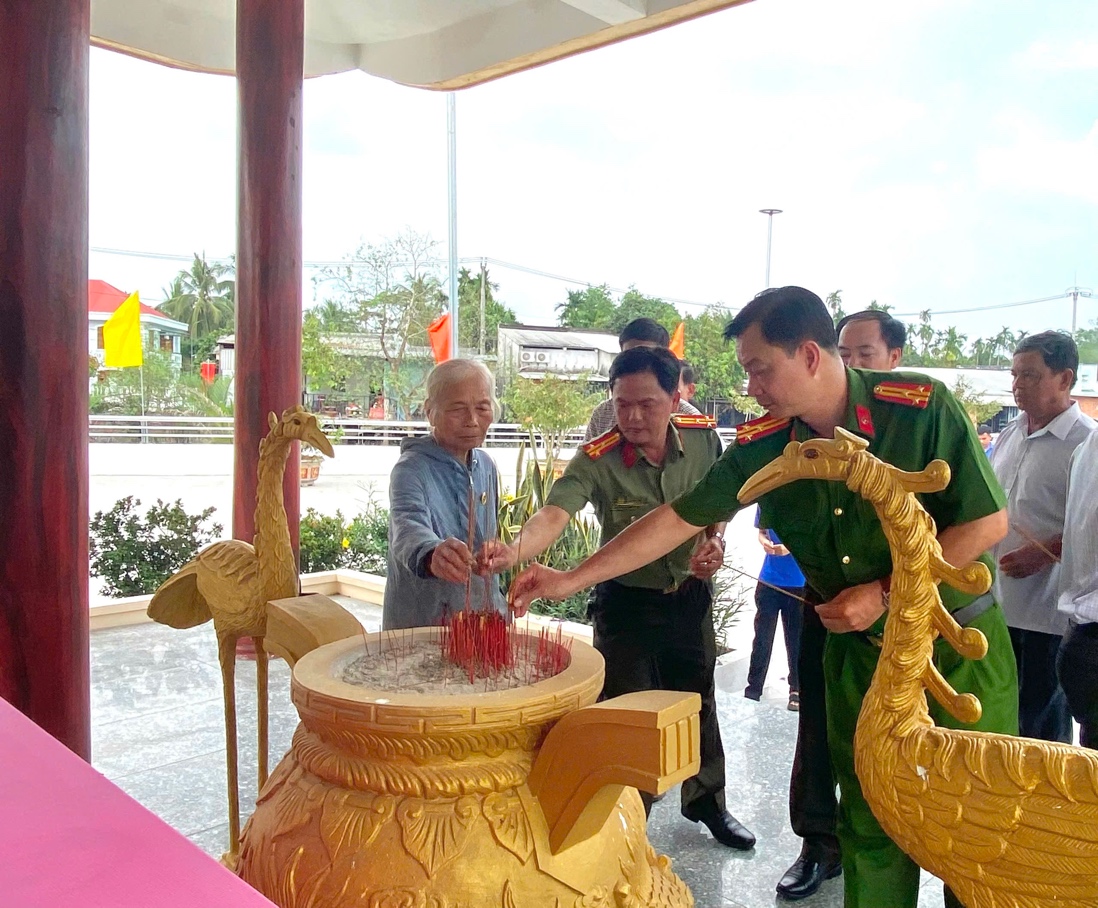(CATP) - Thực hiện đợt thi đua cao điểm chào mừng kỷ niệm 96 năm Ngày thành lập Đảng Cộng sản Việt Nam (03/02/1930 - 03/02/2026) và mừng Xuân Bính Ngọ 2026, Chi đoàn và Hội Phụ nữ Phòng An ninh mạng và phòng, chống tội phạm sử dụng công nghệ cao (PA05) phối hợp cùng Công an xã Đại Hải tổ chức chuỗi hoạt động “Uống nước nhớ nguồn” và tuyên truyền pháp luật gắn với phong trào thi đua “Ba nhất”: Kỷ luật nhất, Trung thành nhất, Gần dân nhất của lực lượng Công an nhân dân. Sắt son niềm tin “Trung thành nhất” Điểm dừng chân đầu tiên trong hành trình là Tượng đài anh hùng Lực lượng vũ trang nhân dân (LLVTND) Thiều Văn Chỏi tại ấp 7, xã Đại Hải. Trong không khí trang nghiêm, trước anh linh người anh hùng đã anh dũng hy sinh vì sự nghiệp giải phóng dân tộc, đoàn công tác đã thành kính dâng hương và dành phút mặc niệm tưởng nhớ công lao to lớn của các thế hệ đi trước.