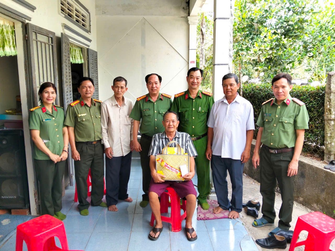 Ảnh: Lãnh đạo đơn vị thăm hỏi và trao quà cho các gia đình chính sách, hội viên Hội cựu Công an nhân dân tại địa phương