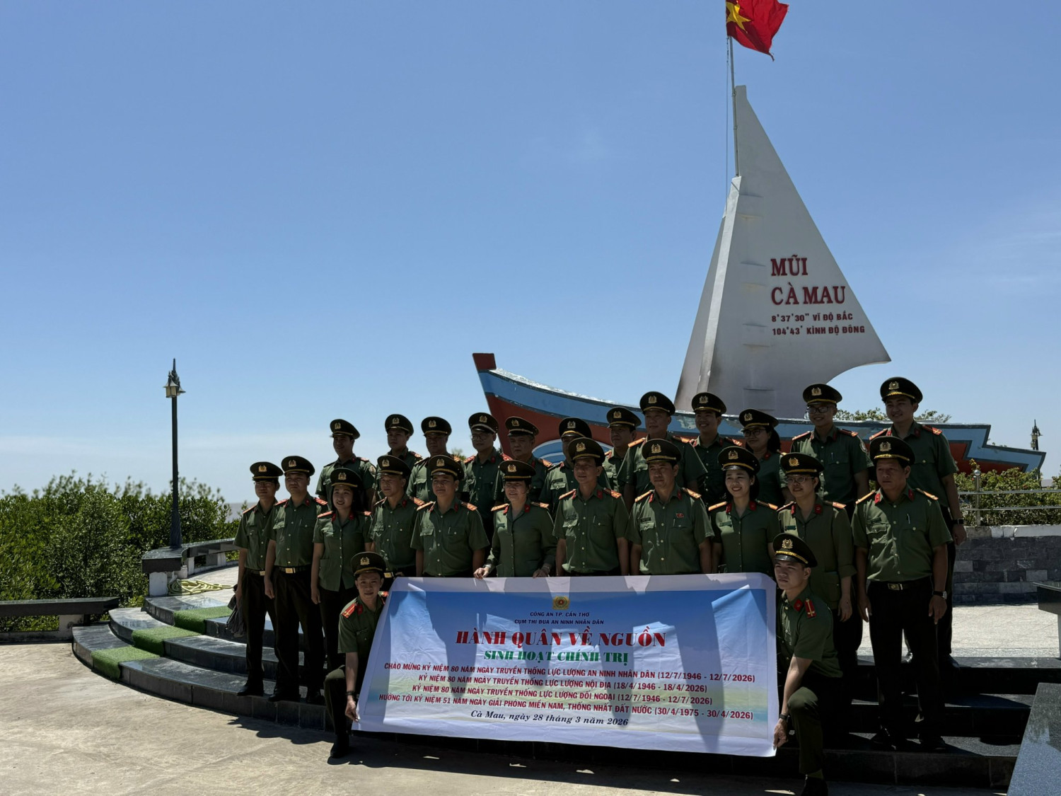 Tại Mũi Cà Mau, xã Đất Mũi, tỉnh Cà Mau, Đoàn đã đến dâng hương tưởng niệm Đức Quốc tổ Lạc Long Quân, các bậc tiền nhân đã có công dựng nước và tham quan điểm cực Nam, mảnh đất thiêng liêng cuối cùng trên đất liền của Tổ quốc; qua đó cán bộ, chiến sỹ lực lượng An ninh nhân dân, Công an thành phố Cần Thơ càng tự hào về truyền thống hào hùng của dân tộc và quá trình dựng nước, giữ nước, mở mang bờ cõi của các thế hệ cha anh đi trước để Tổ quốc ta có được dáng hình đất nước “chữ S” như hôm nay; đồng thời quyết tâm xây dựng và bảo vệ vững chắc Tổ quốc Việt Nam xã hội chủ nghĩa trong kỷ nguyên vươn mình của dân tộc.