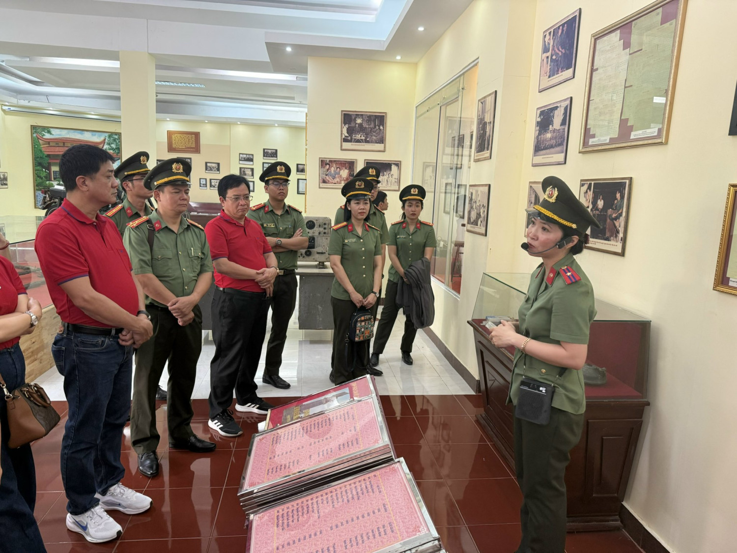 Cụm thi đua An ninh nhân dân, Công an thành phố Cần Thơ nghe cán bộ khu di tích thuyết minh về Kế hoạch phản gián CM-12