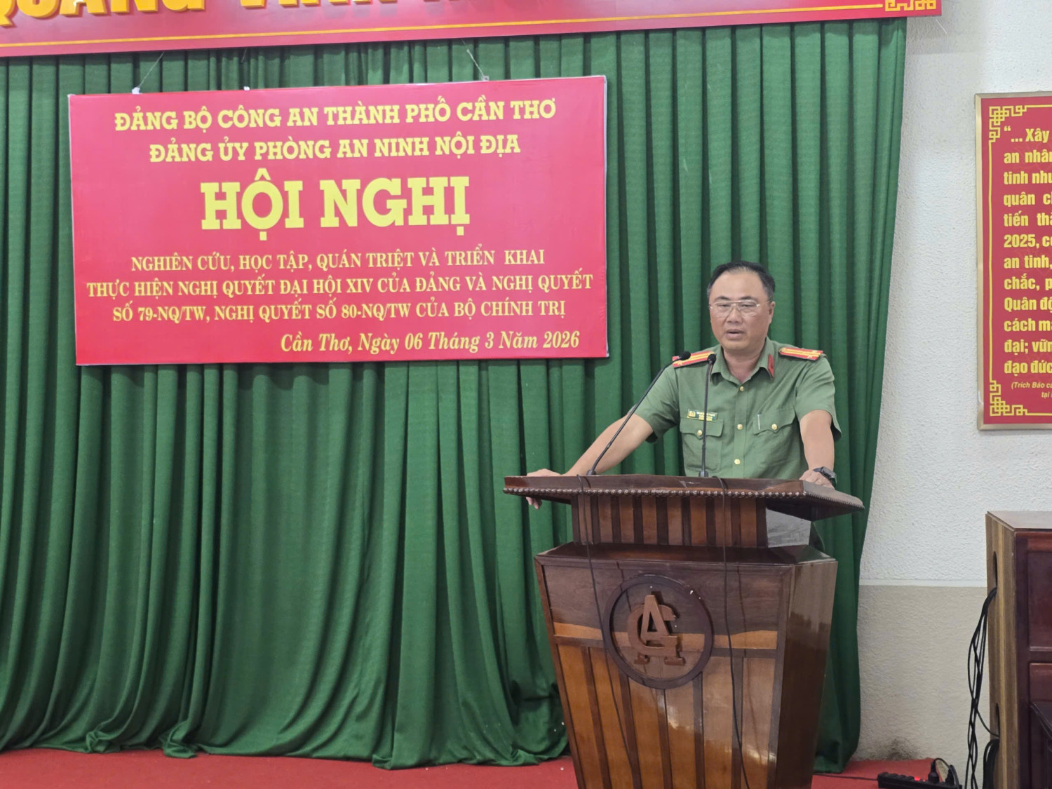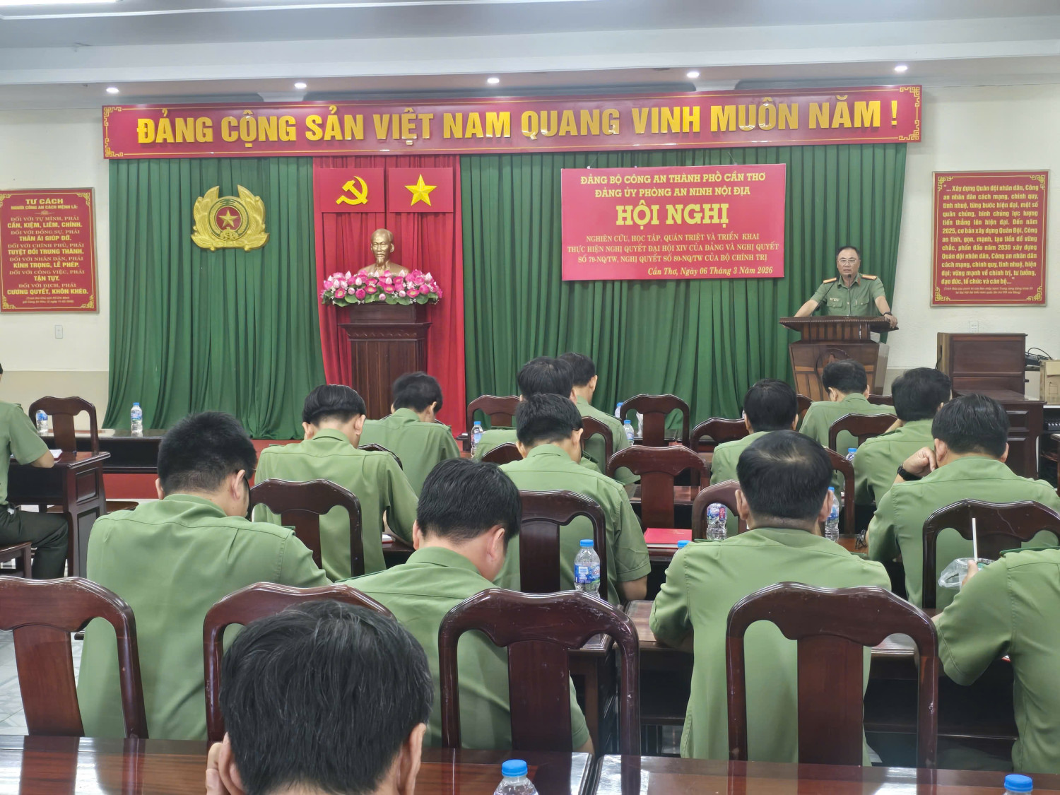 Ngày 06/3/2026, Đảng uỷ Phòng An ninh nội địa tổ chức Hội nghị nghiên cứu, học tập, quán triệt, triển khai thực hiện Nghị quyết Đại hội đại biểu toàn quốc lần thứ XIV của Đảng và Nghị quyết số 79-NQ/TW, Nghị quyết số 80-NQ/TW của Bộ Chính trị cho toàn thể cán bộ, đảng viên trong đơn vị. Hội nghị do đồng chí Thượng tá Phạm Hồng Phước - Ủy viên Ban Chấp hành Đảng bộ Công an thành phố, Bí thư Đảng uỷ, Trưởng Phòng chủ trì; cùng toàn thể cán bộ, đảng viên trong đơn vị.