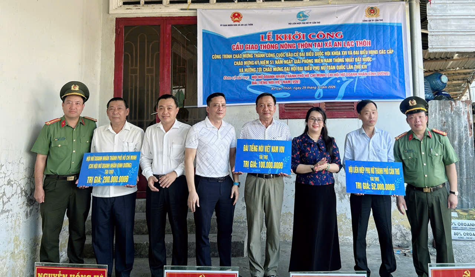 Đặc biệt, phát huy vai trò nòng cốt trong công tác tham mưu, đơn vị đã tham mưu Giám đốc Công an thành phố phối hợp Hội Liên hiệp phụ nữ thành phố và Đài tiếng nói Việt Nam (VOV) vận động, ủng hộ xây dựng công trình Cầu giao thông nông thôn tại xã An Lạc Thôn trị giá 590 triệu đồng. Công trình được khởi công ngày 29/3/2026, mang ý nghĩa thiết thực chào mừng các sự kiện chính trị trọng đại của đất nước, đồng thời góp phần cải thiện điều kiện đi lại, nâng cao đời sống người dân địa phương.