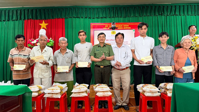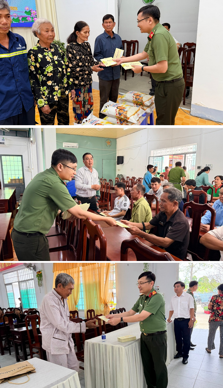 Thừa ủy quyền của đồng chí Giám đốc Công an thành phố, đồng chí Trung tá Lê Quốc Trung, Phó Trưởng Phòng Tham mưu đã trực tiếp đến thăm hỏi, động viên và trao tặng 100 phần quà cho các hộ gia đình khó khăn. Tổng giá trị các phần quà là 100 triệu đồng, cùng với 1 tấn gạo được trao tận tay bà con Nhân dân.