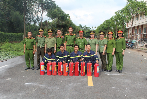 Các đơn vị tham gia tập huấn công tác phòng cháy, chữa cháy tại Công an xã Phong Điền