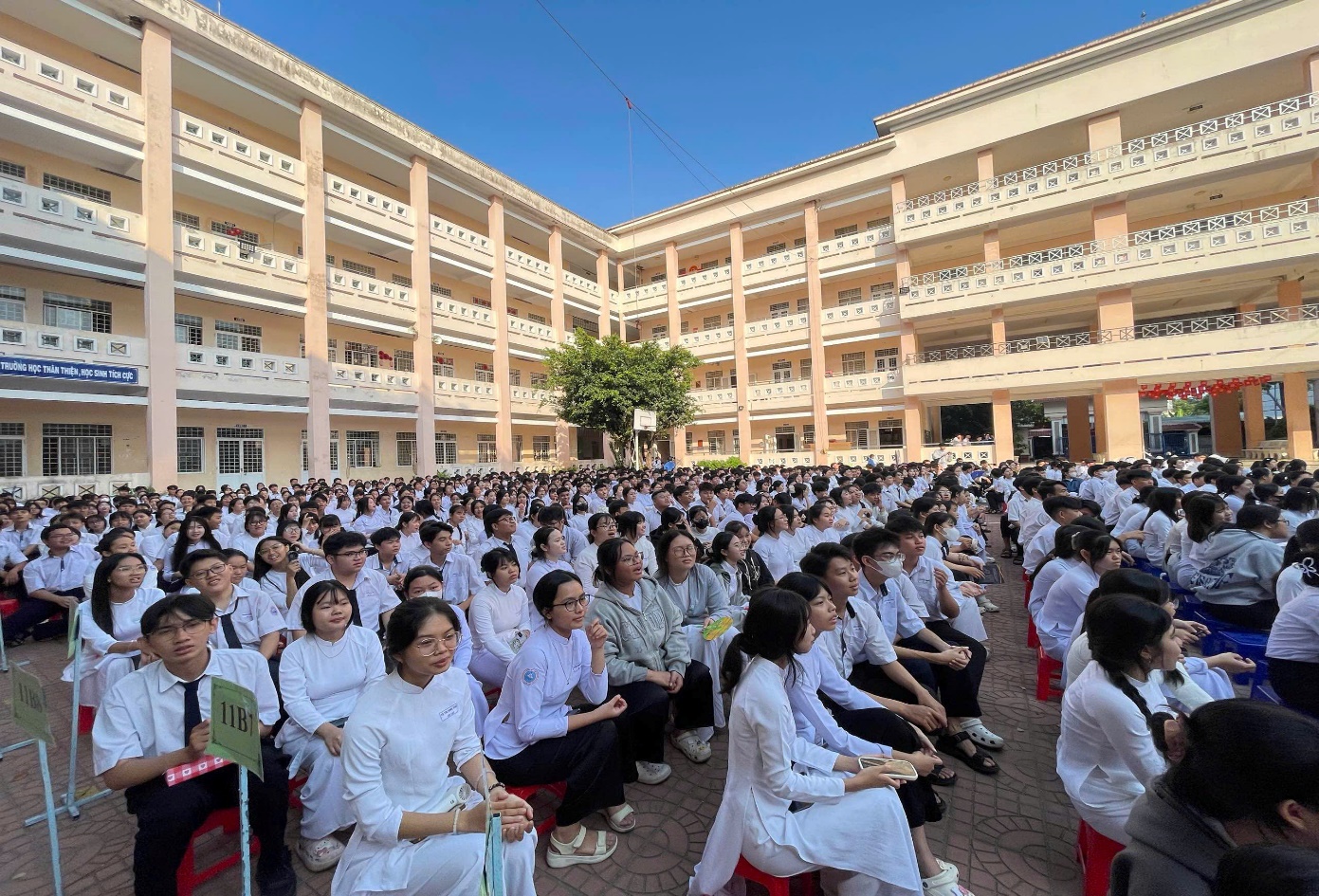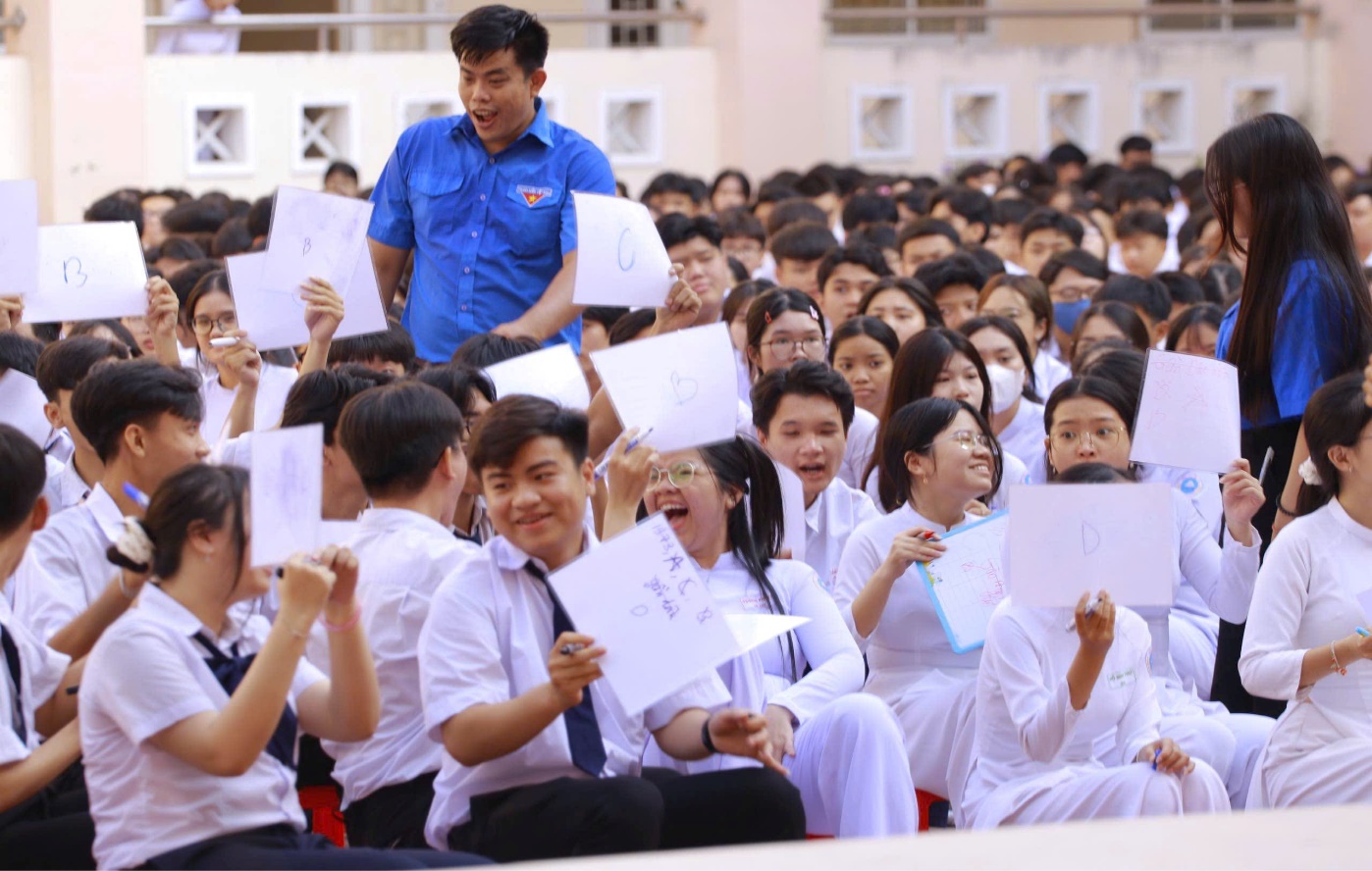 Hình ảnh hơn 1900 em học sinh hào hứng tham dự buổi sinh hoạt chính trị
