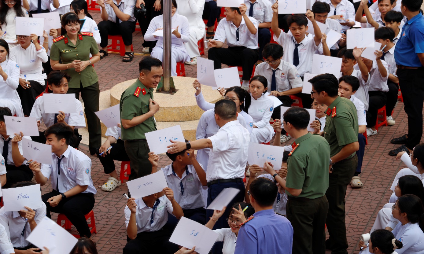 Thay cho những buổi diễn thuyết, cáckiến thức pháp luật đã được truyền tải đến các em học sinh một cách trực quan, sinh động thông qua cuộc thi “Rung chuông vàng”. Dưới sự cổ vũ nhiệt tình của thầy cô và bạn bè, 104 thí sinh đã cùng nhau tranh tài qua các gói câu hỏi về truyền thống lịch sử vẻ vang của dân tộc, Luật An ninh mạng và kỹ năng nhận diện tội phạm công nghệ cao.
