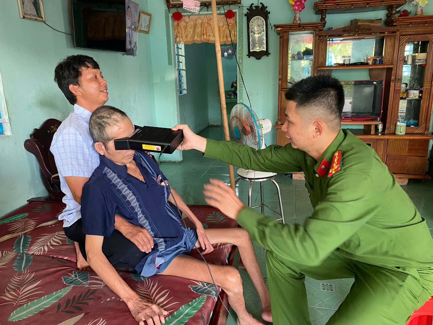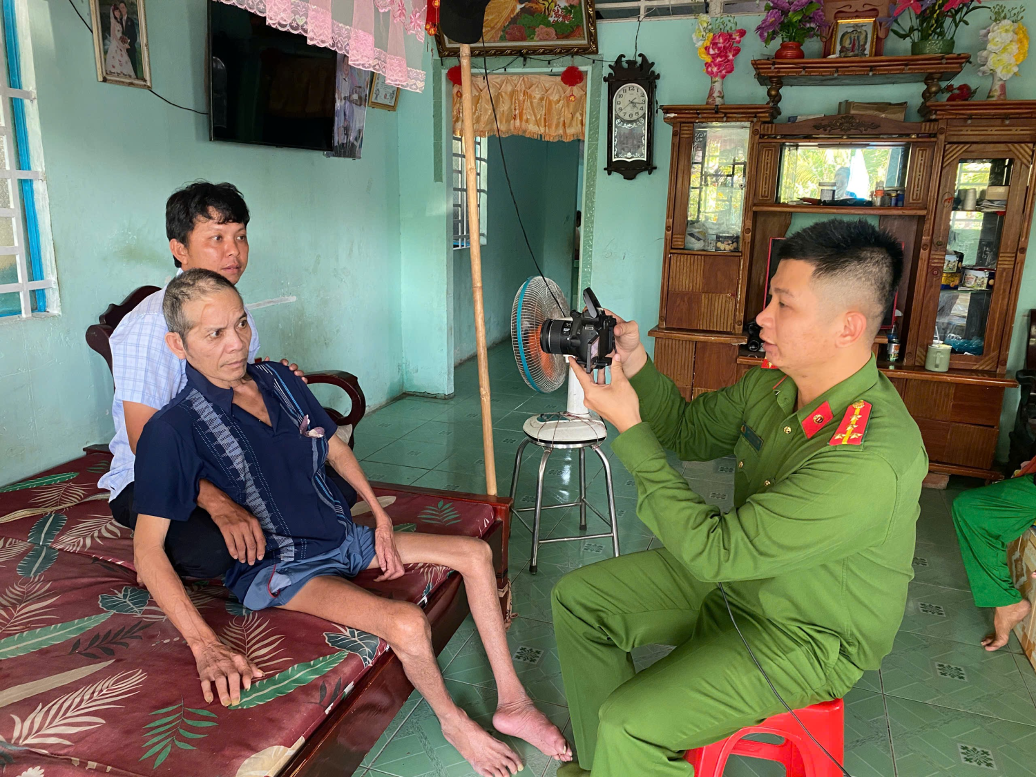 Cán bộ, chiến sĩ Công an xã Tân Hòa hỗ trợ cấp căn cước cho người già yếu, người bị bệnh tại nhà