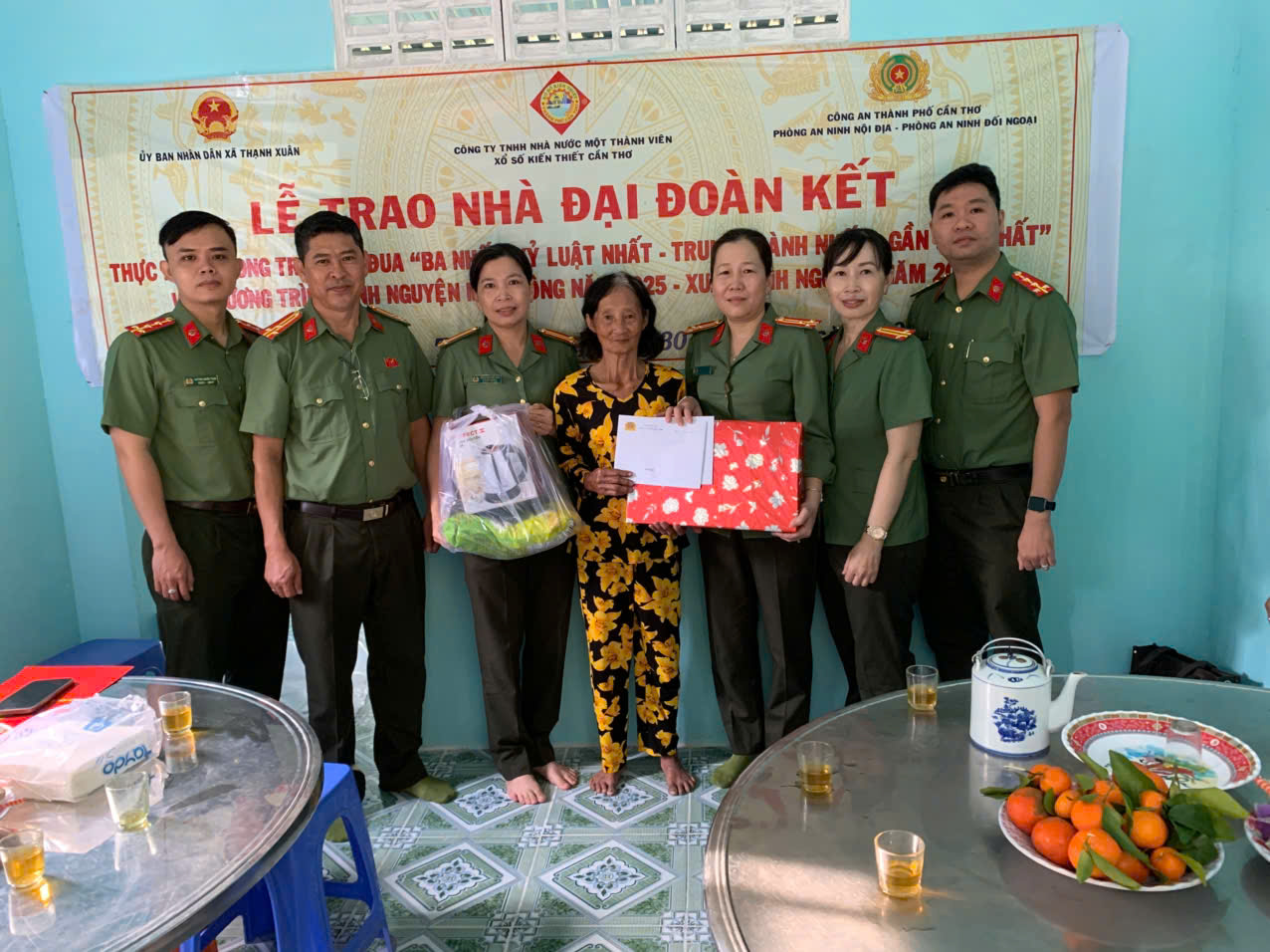 Đại diện lãnh đạo Phòng An ninh nội địa phối hợp với các đơn vị trao tặng nhà đại đoàn kết cho gia đình bà Lê Thị Hai tại xã Thạnh Xuân, thành phố Cần Thơ