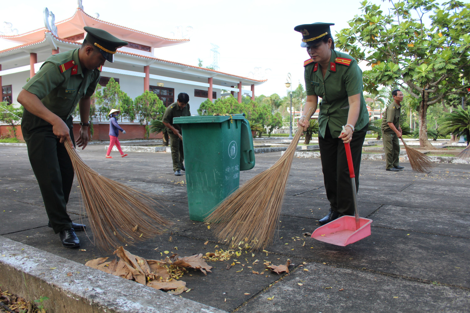 Cán bộ, chiến sĩ dọn vệ sinh, chỉnh trang Khu Di tích lịch sử Chiến thắng Ông Hào