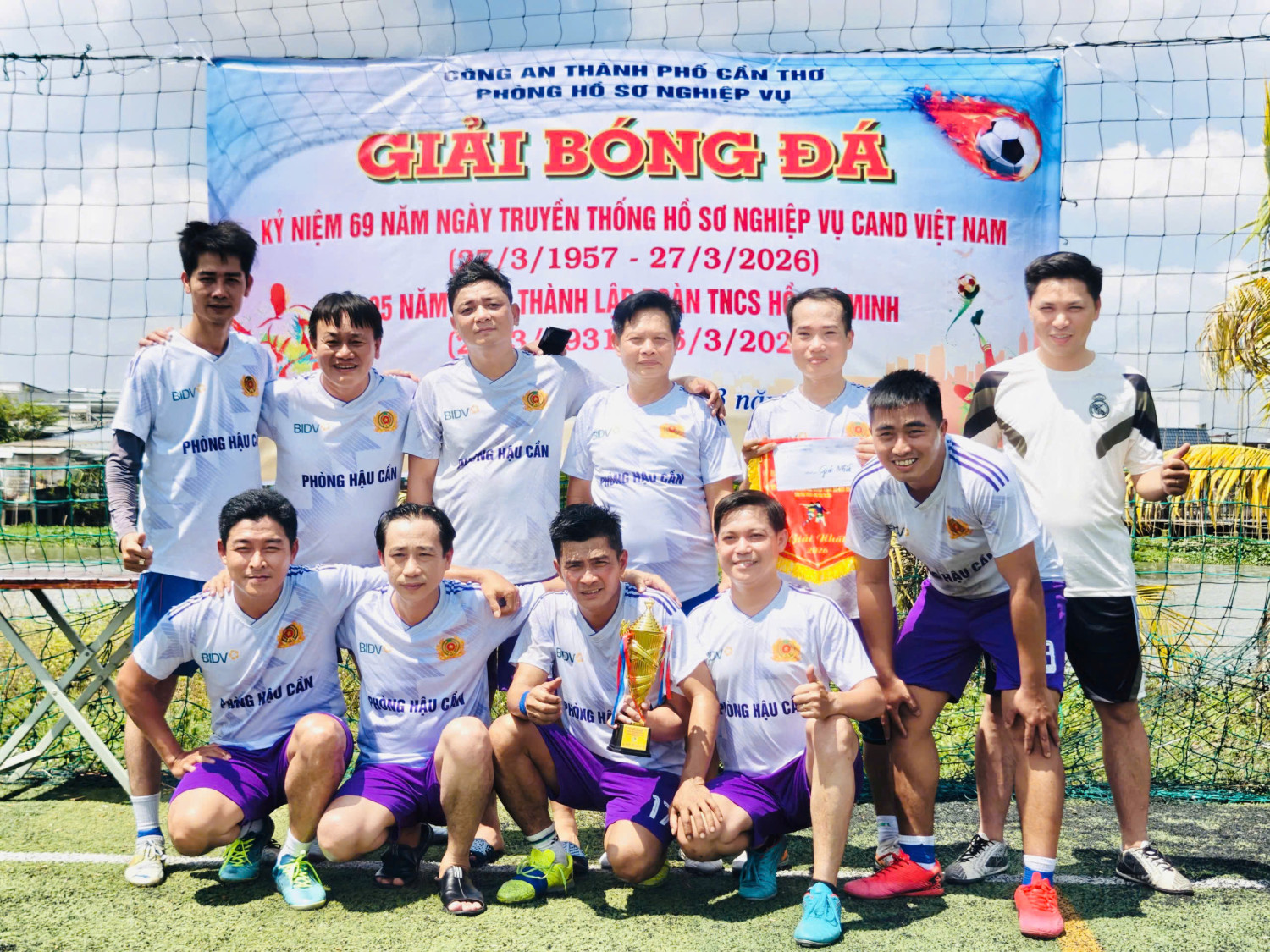 Hòa trong không khí thi đua sôi nổi của tuổi trẻ Công an thành phố hướng tới kỷ niệm 95 năm Ngày thành lập Đoàn TNCS Hồ Chí Minh (26/3/1931 – 26/3/2026) và 70 năm truyền thống Đoàn TNCS Hồ Chí Minh Bộ Công an (1956–2026), Phòng Hậu cần đã tổ chức nhiều hoạt động thiết thực, ý nghĩa hưởng ứng Phong trào “Ba nhất: Kỷ luật nhất - Trung thành nhất - Gần dân nhất”. Đơn vị đã phối hợp Công an xã Trường Long tổ chức hành trình về nguồn, sinh hoạt chính trị kết hợp dọn vệ sinh, chỉnh trang khuôn viên, dâng hương, dâng hoa tại Khu Di tích lịch sử Chiến thắng Ông Hào (ấp Trường Thọ, xã Trường Long, thành phố Cần Thơ). Hoạt động nhằm giáo dục truyền thống cách mạng, khơi dậy niềm tự hào và ý thức trách nhiệm của cán bộ, chiến sĩ, đoàn viên thanh niên trong công tác, chiến đấu, xây dựng lực lượng và phục vụ Nhân dân. Phát huy tinh thần xung kích, tình nguyện, Phòng Hậu cần đã triển khai công trình thanh niên “Tuyến đường xanh - sạch - đẹp” tại ấp Đông Thắng, xã Đông Thuận. Cán bộ, chiến sĩ, đoàn viên thanh niên đã tích cực tham gia vệ sinh môi trường, trồng cây xanh, cùng nhân dân sửa chữa tuyến đường dài 01km, đóng góp kinh phí sửa chữa với số tiền 5 triệu đồng do cán bộ, chiến sĩ đơn vị đóng góp. Song song đó, đơn vị tích cực tham gia các hoạt động văn hóa, thể thao như giải bóng đá giao lưu giữa các đơn vị trong Công an thành phố chào mừng kỷ niệm 95 năm Ngày thành lập Đoàn TNCS Hồ Chí Minh; tham gia Ngày hội đoàn viên và Ngày hội văn hóa, thể thao năm 2026 với các nội dung như thi nhảy flashmob “Nhịp bước thanh niên”, kéo co, bóng chuyền bãi biển. Qua đó, tạo không khí thi đua sôi nổi, tăng cường tinh thần đoàn kết, gắn bó giữa cán bộ, chiến sĩ các đơn vị. Đặc biệt, hưởng ứng tinh thần “Gần dân nhất”, cán bộ, chiến sĩ Phòng Hậu cần đã tổ chức thăm hỏi, động viên bệnh nhân có hoàn cảnh khó khăn đang điều trị tại Bệnh viện Đa khoa Trung ương Cần Thơ với số tiền trên 20 triệu đồng do cán bộ, chiến sĩ đơn vị đóng góp. Thông qua các hoạt động đã thể hiện rõ vai trò xung kích, tiên phong, vì nhân dân phục vụ của tuổi trẻ Phòng Hậu cần, góp phần thực hiện hiệu quả nhiệm vụ chính trị của đơn vị, là minh chứng rõ nét cho kết quả triển khai thực hiện hiệu quả Phong trào “Ba nhất: Kỷ luật nhất - Trung thành nhất - Gần dân nhất”, tạo dấu ấn thiết thực trong công tác an sinh xã hội và phục vụ cộng đồng, qua đó, lan tỏa hình ảnh đẹp của lực lượng Công an nhân dân trong “Tháng Thanh niên”. Một số hình ảnh các hoạt động: