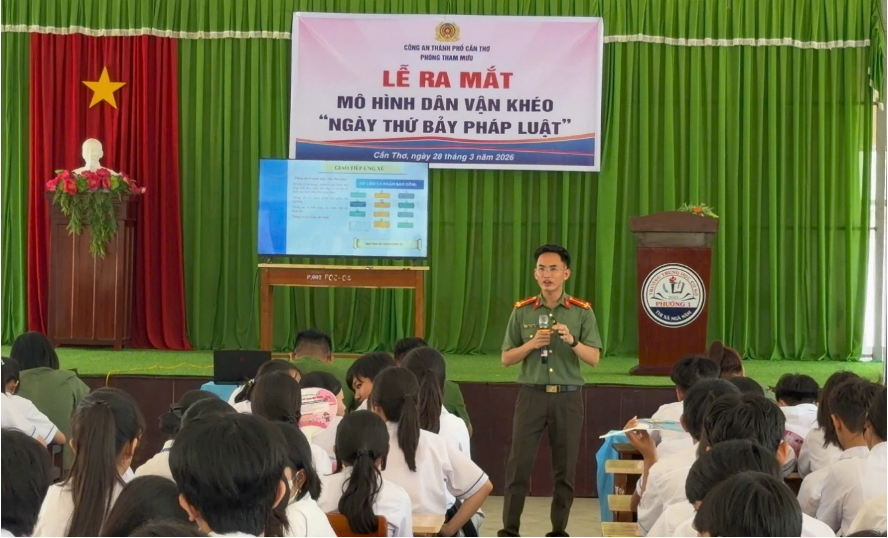 Thứ ba, mô hình “Ngày thứ 7 pháp luật” – một sáng kiến thiết thực trong công tác tuyên truyền, phổ biến, giáo dục pháp luật, đặc biệt hướng đến đối tượng học sinh, thanh thiếu niên. Thông qua các buổi tuyên truyền định kỳ hằng quý do trực tiếp cán bộ, chiến sĩ Phòng Tham mưu thực hiện với nhiều hình thức sinh động, gần gũi với nội dung thiết thực như phòng, chống bạo lực học đường, an toàn giao thông, kỹ năng sử dụng mạng xã hội an toàn… Mô hình đã góp phần nâng cao nhận thức pháp luật, xây dựng lối sống lành mạnh, ý thức chấp hành pháp luật trong thế hệ trẻ. Đây cũng là cầu nối hiệu quả giữa lực lượng Công an với nhà trường và gia đình trong công tác giáo dục, quản lý thanh thiếu niên.