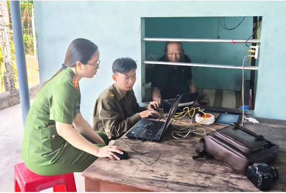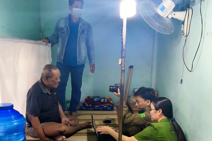 Công an phường Mỹ Xuyên đến tận nhà thu nhận hồ sơ cấp căn cước cho người già yếu đi lại khó khăn