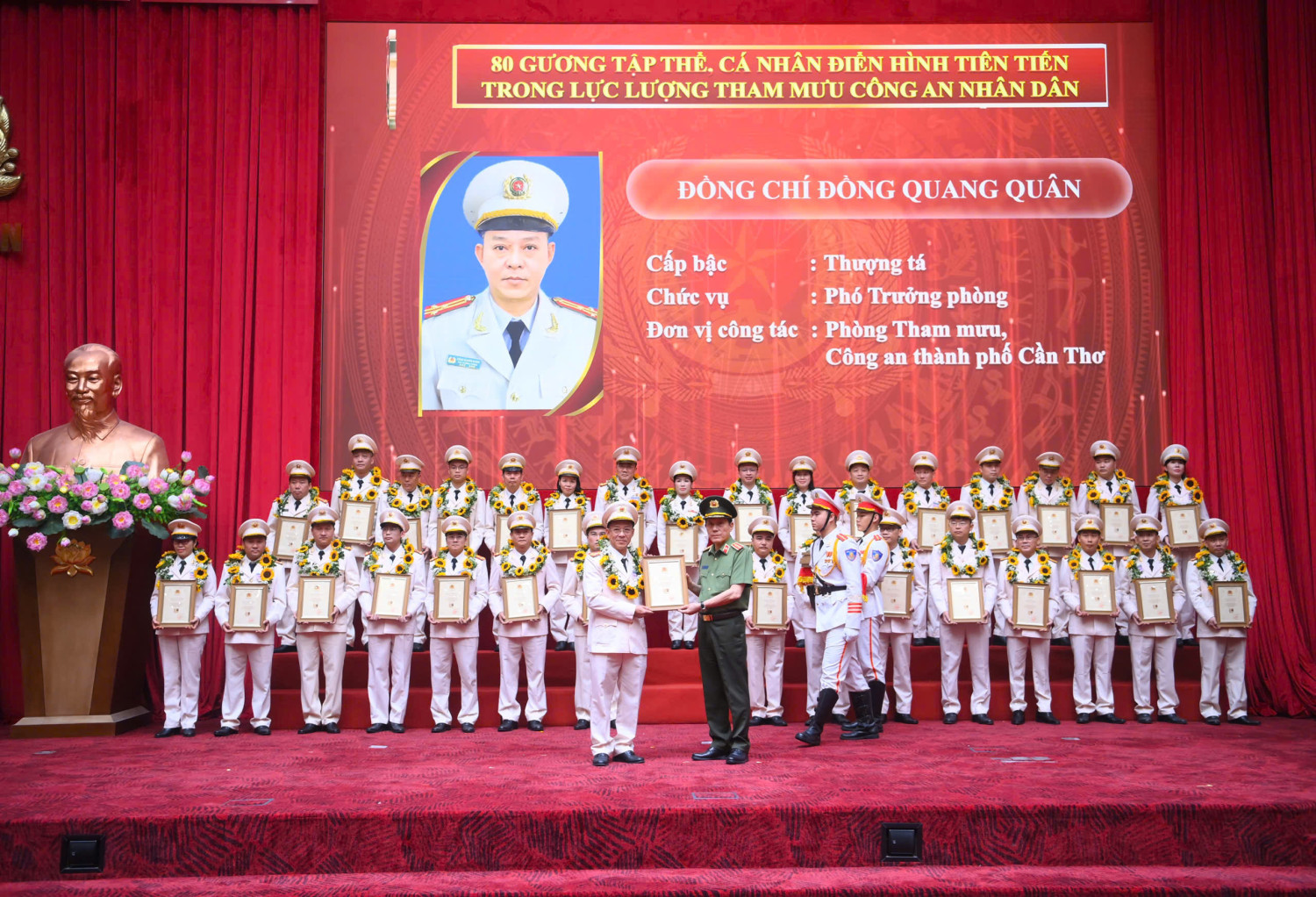 Đồng chí Đại tướng Lương Tam Quang, Ủy viên Bộ Chính trị, Bộ trưởng Bộ Công an đã trao bằng công nhận cho đồng chí Thượng tá Đồng Quang Quân, Phó Trưởng Phòng Tham mưu, Công an Công an thành phố Cần Thơ tại chương trình tôn vinh 80 tập thể, cá nhân điển hình tiên tiến trong lực lượng Tham mưu Công an nhân dân
