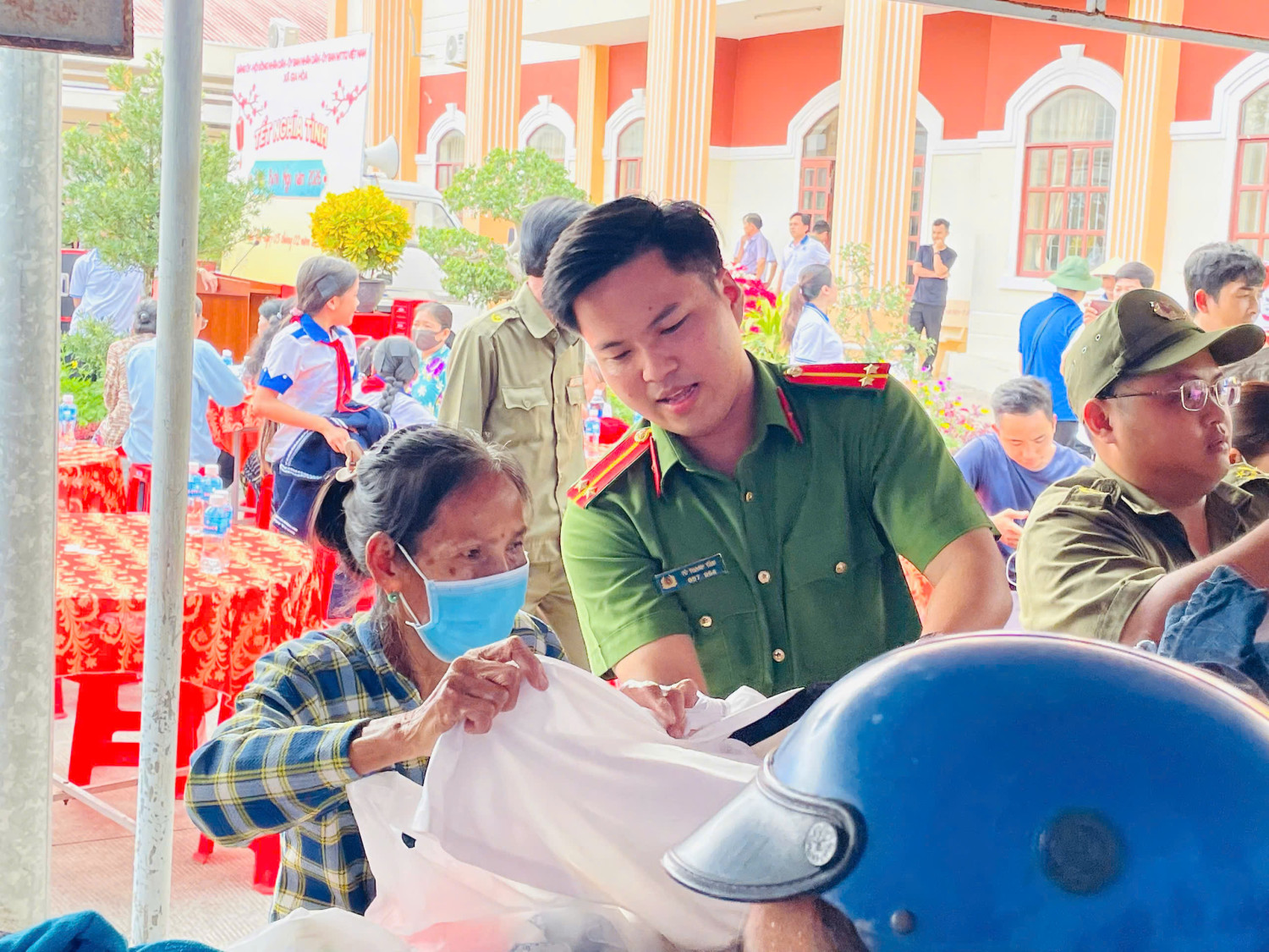 Trong suốt quá trình tổ chức, đoàn viên, thanh niên Công an xã cùng lực lượng tham gia bảo vệ an ninh, trật tự ở cơ sở nhiệt tình hỗ trợ bà con vận chuyển, lựa chọn trang phục phù hợp. Hình ảnh cán bộ, chiến sĩ tận tình hướng dẫn, trao tận tay từng phần quà đã để lại ấn tượng đẹp, góp phần xây dựng hình ảnh người chiến sĩ Công an gần gũi, trách nhiệm, vì Nhân dân phục vụ.
