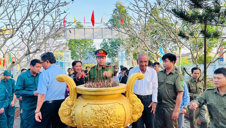 Chi đoàn Công an xã Hồ Đắc Kiện phối hợp cùng các lực lượng dâng hương tại Bia tưởng niệm liệt sĩ