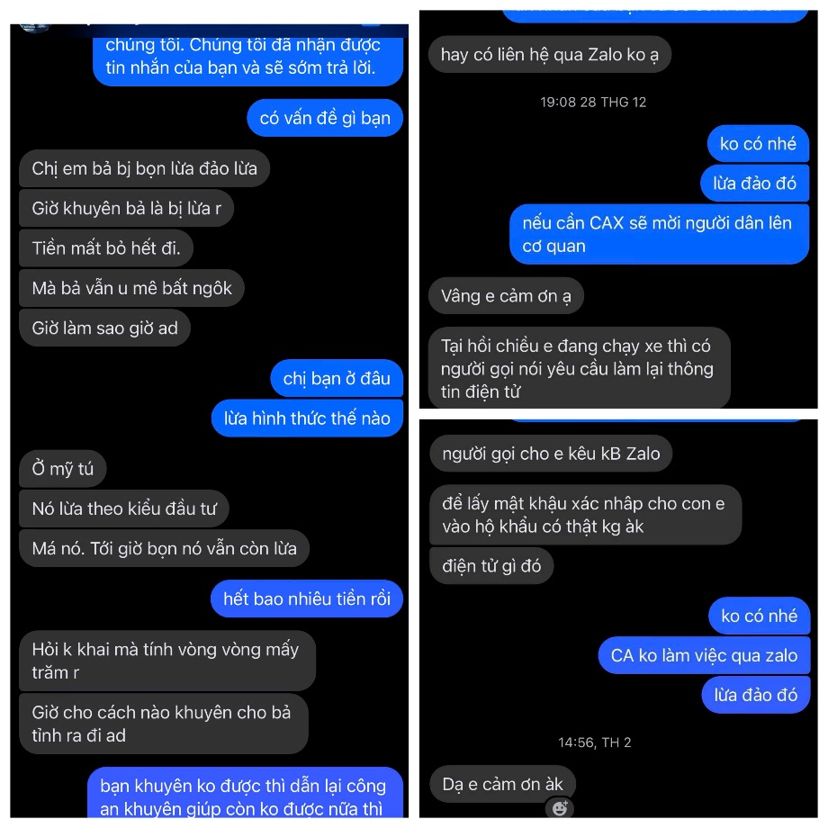 Khi công an xã tiếp nhận các trường hợp này thường có biểu hiện mệt mỏi, tinh thần không ổn định, không mang theo giấy tờ tùy thân, không nhớ rõ địa chỉ nhà và người thân. Công an xã đã đưa về trụ sở cho ăn uống, nghỉ ngơi, ổn định tinh thần sau đó nhanh chóng sử dụng tổng hợp các biện pháp xác minh, tìm kiếm thông tin để hỗ trợ liên hệ người thân đưa người đi lạc về nhà. Các gia đình khi gặp lại người thân đi lạc luôn bày tỏ lòng biết ơn sâu sắc đến tinh thần trách nhiệm và sự tận tâm của lực lượng Công an xã. Những hành động này tuy nhỏ nhưng mang ý nghĩa nhân văn sâu sắc, thể hiện rõ nét hình ảnh người chiến sĩ Công an xã gần dân, trọng dân, hết lòng vì Nhân dân phục vụ, tiếp tục góp phần củng cố niềm tin của Nhân dân, lan tỏa những giá trị tốt đẹp, hình ảnh người chiến sĩ Công an tận tụy, giàu lòng nhân ái, luôn sẵn sàng giúp đỡ Nhân dân trong mọi hoàn cảnh, củng cố niềm tin yêu của Nhân dân đối với lực lượng Công an cơ sở. 3. Phản bác các tin đồn thất thiệt tại địa phương Trong thời gian qua, Công an xã Lai Hoà đã phát hiện và đấu tranh, phản bác nhiều thông tin sai sự thật cả trên mạng lẫn ngoài đời thật, qua đó trấn an dư luận, góp phần đảm bảo ổn định cuộc sống người dân địa phương. Tiêu biểu như vụ việc sau: Qua công tác nắm tình hình địa bàn Công an xã Lai Hoà phát hiện tại một số nơi trên địa bàn xã lan truyền tin đồn thất thiệt về "thời gian tới sẽ có hiện tượng tối 7 ngày 7 đêm, không có điện nước v.v... " làm dấy lên sự lo lắng, hoang mang trong quần chúng nhân dân, nhất là những người lớn tuổi, dẫn đến có hiện tượng bà con tích trữ lương thực, thực phẩm, nến, đèn dầu, mì gói,....Sau khi phát hiện thông tin Công an xã đã triển khai lực lượng khẩn trương xác minh nguồn tán phát thông tin trên. Nhận thấy tin đồn trên là hoàn toàn vô căn cứ, không có cơ sở khoa học Công an xã Lai Hoà đã tuyên truyền, phản bác tin đồn trên, qua đó đã cơ bản ổng định tình hình tại địa phương. 4. Là nơi người dân tìm đến khi nghi vấn lừa đảo, phòng chống tội phạm Qua công tác tuyên truyền nâng cao nhận thức pháp luật của người dân, phòng ngừa các thủ đoạn, hoạt động lừa đảo cũng như các hành vi vi phạm pháp luật khác thời gian qua đã dần hình thành được tinh thần cảnh giác, phòng chống lừa đảo, tội phạm cho bà con nhân dân. Công an xã trở thành nơi người dân cả trong và ngoài địa bàn xã Lai Hoà tìm đến để hổ trợ khi nghi vấn lừa đảo, qua đó kịp thời ngăn chặn, phòng tránh nhiều vụ lừa đảo trực tuyến đối với bà con, không để các đối tượng sử dụng hệ thống mạng điện thoại viễn thông, mạng Internet thực hiện hành vi lừa đảo chiếm đoạt tài sản, góp phần bảo đảm an ninh chính trị, trật tự, an toàn xã hội trên không gian mạng.