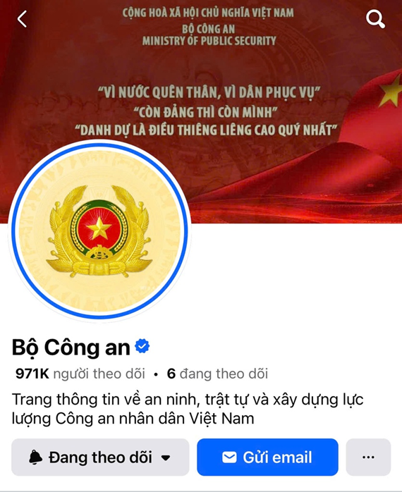Fanpage chính thức của Bộ Công an trên nền tảng mạng xã hội Facebook