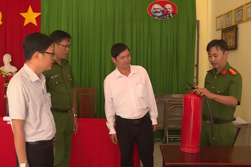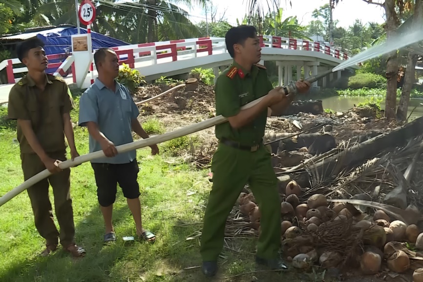 Công an xã Long Phú phối hợp thực tập phương án chữa cháy tại khu vực bỏ phiếu